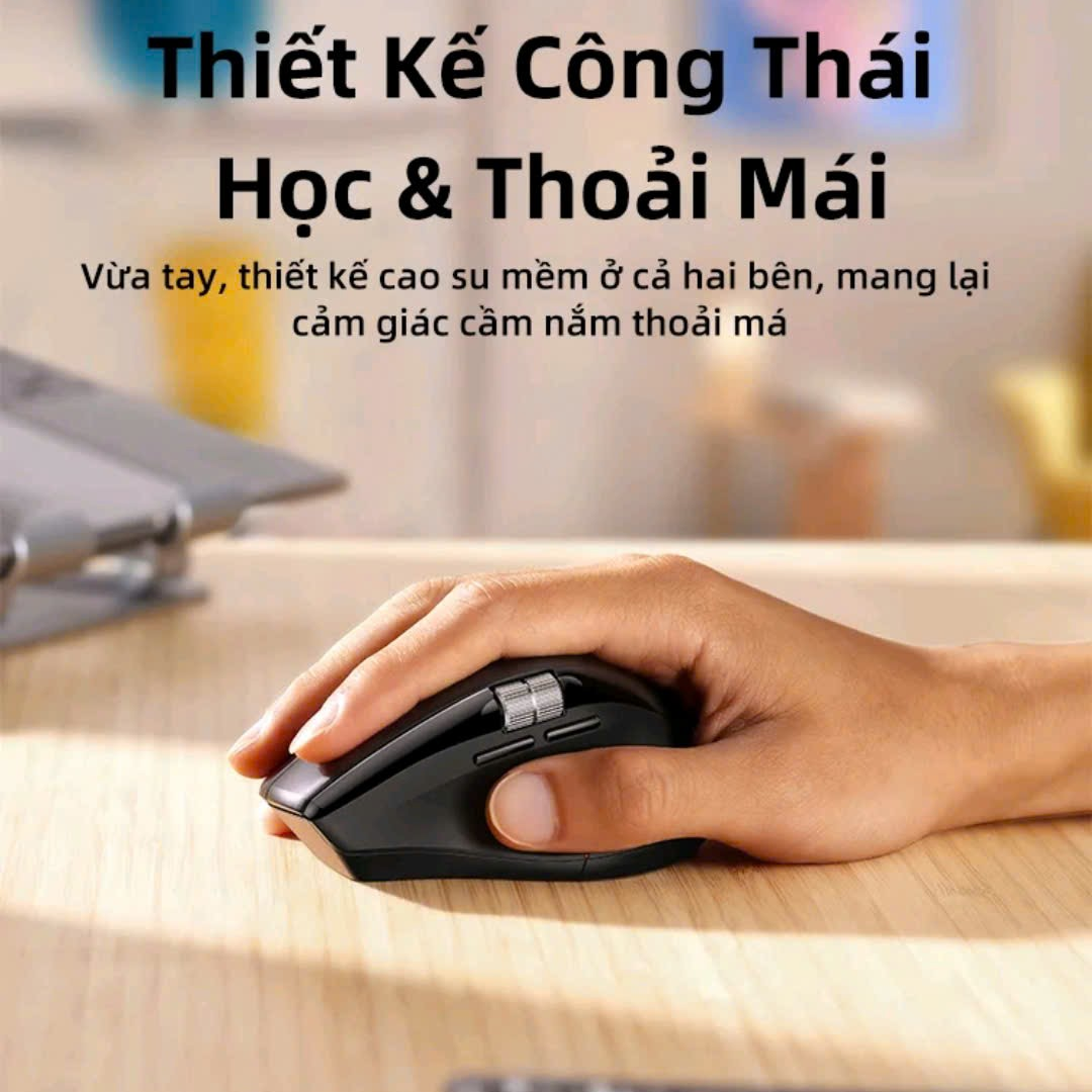 • Form cầm công thái học: M751 không phải là chuột đứng (vertical) hoàn toàn, mà có độ nghiêng nhẹ. Điều này giúp cổ tay tôi ở tư thế tự nhiên hơn, giảm hẳn cảm giác mỏi khi phải làm việc liên tục 8-10 tiếng/ngày.